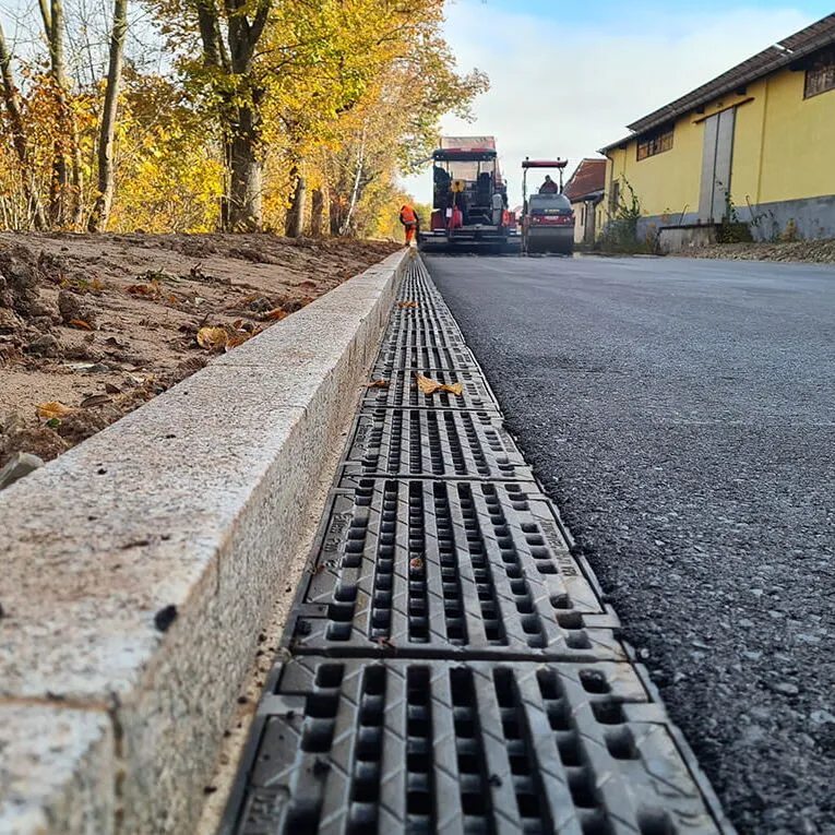 Precision-made kerb stones for effective road edging and drainage management.